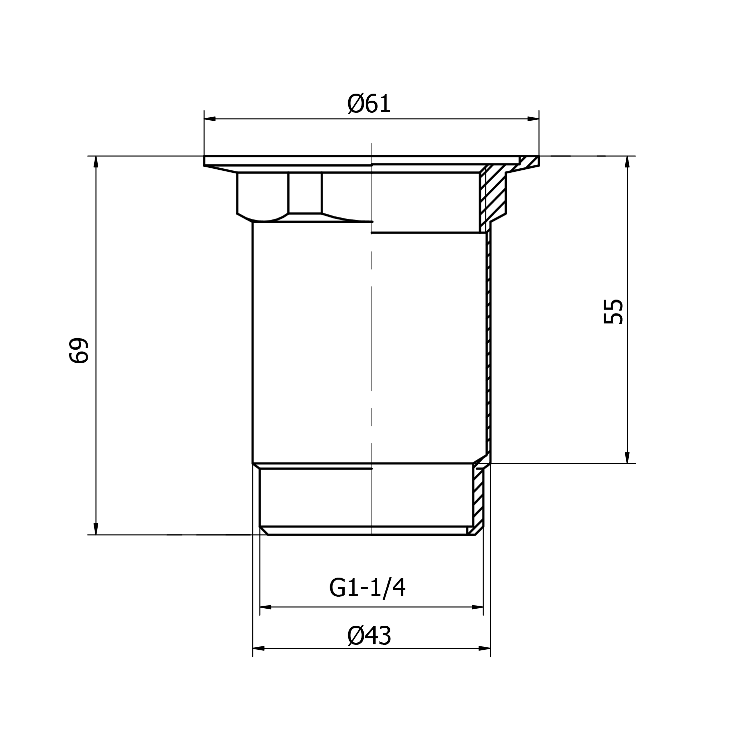 MINIMAL umyvadlová výpust 5/4“, neuzavíratelná, velká krytka, tl.30-60mm, nerez mat