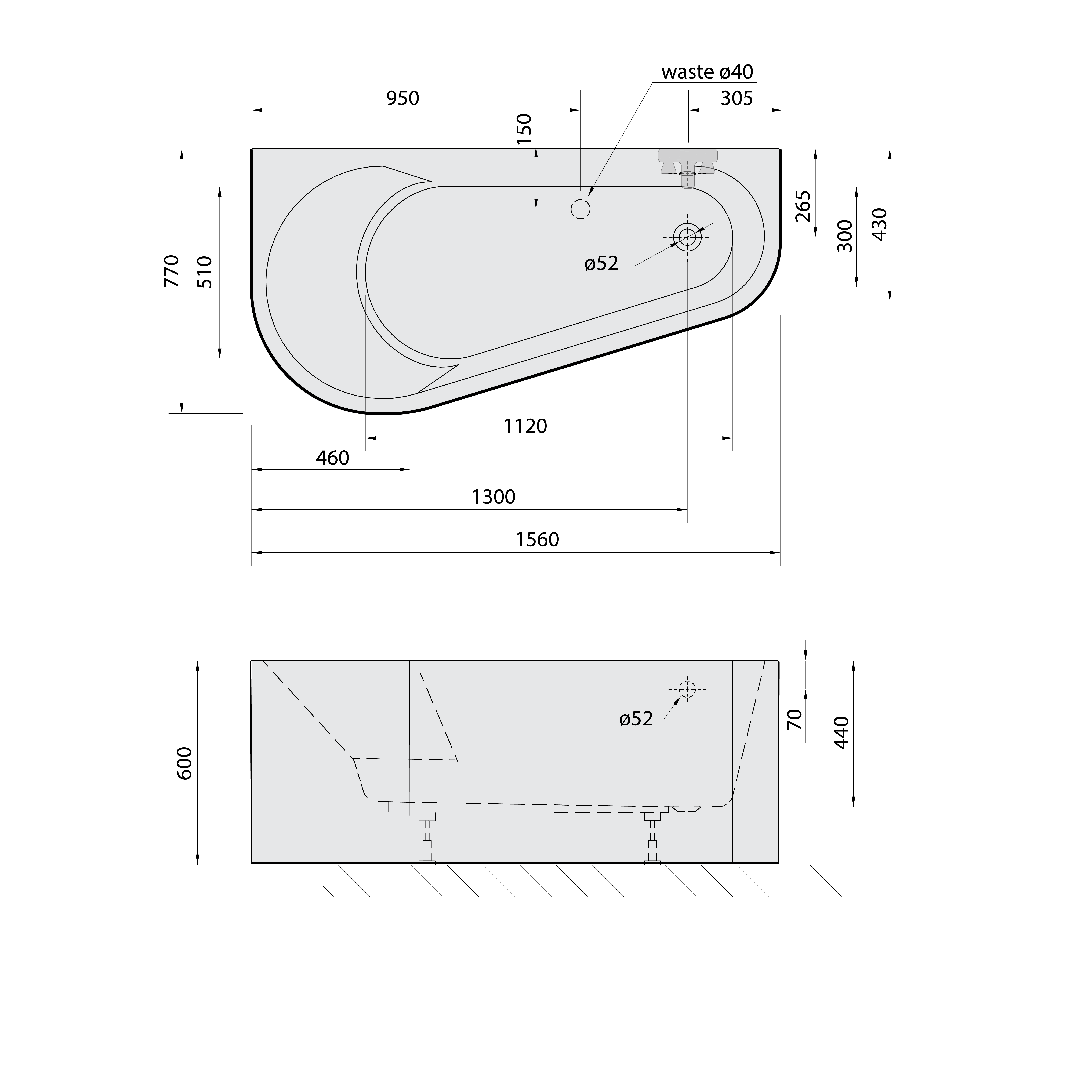 PROJEKTA DL MONOLITH nástěnná stojící vana 156x77x60cm, bílá/černá