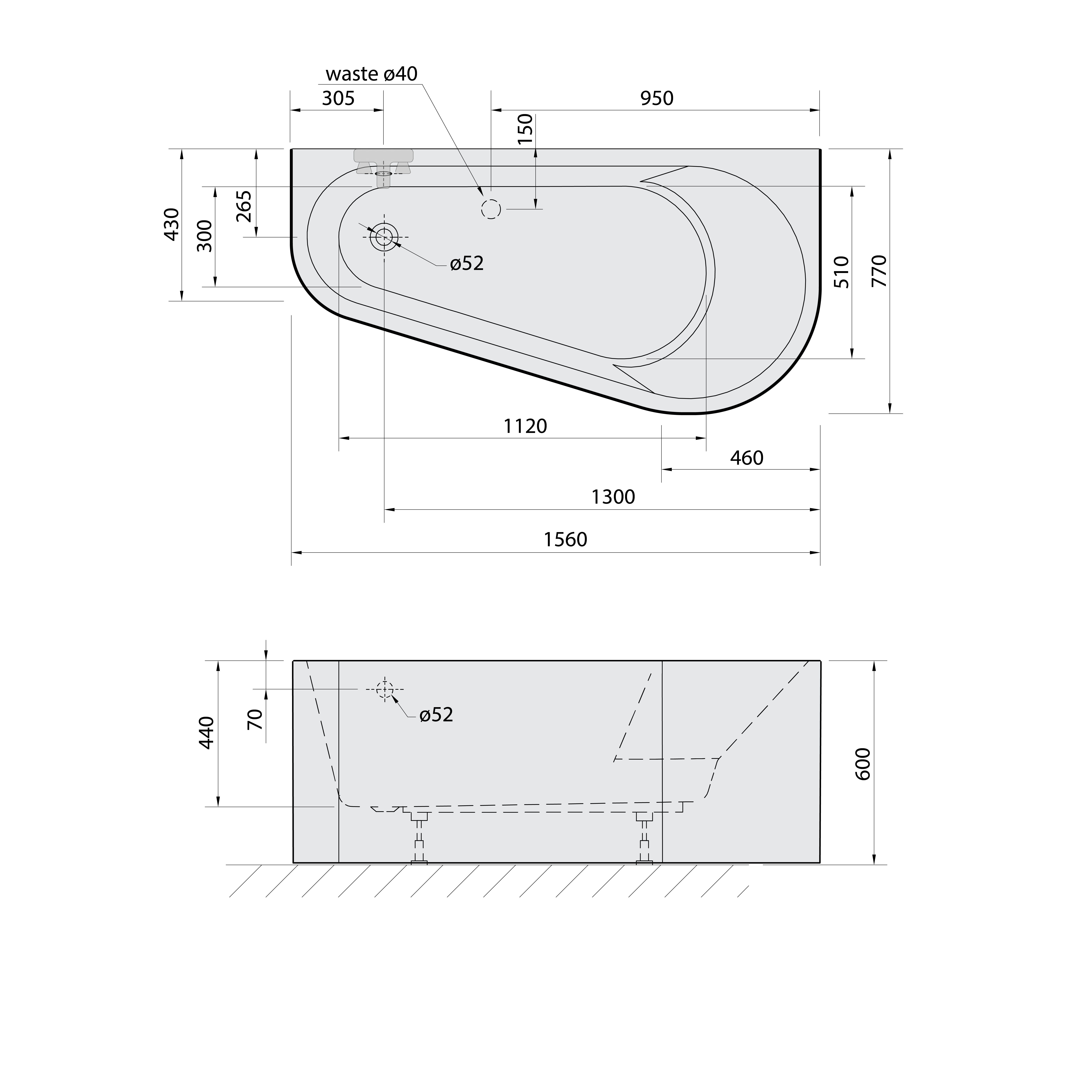 PROJEKTA DR MONOLITH nástěnná stojící vana 156x77x60cm, bílá/černá