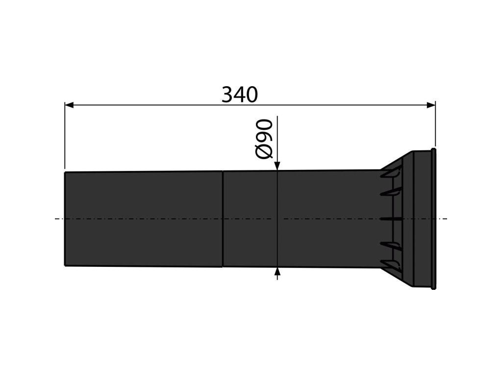 Přímé hrdlo pro napojení závěsné WC mísy k odpadu, polypropylen, Ø90 mm, včetně těsnění