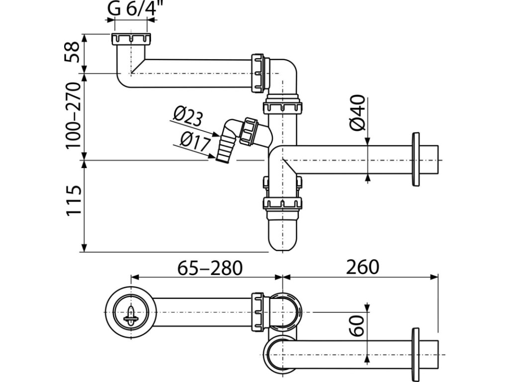Prostorově úsporný dřezový sifon s přípojkou a převlečnou maticí 6/4"