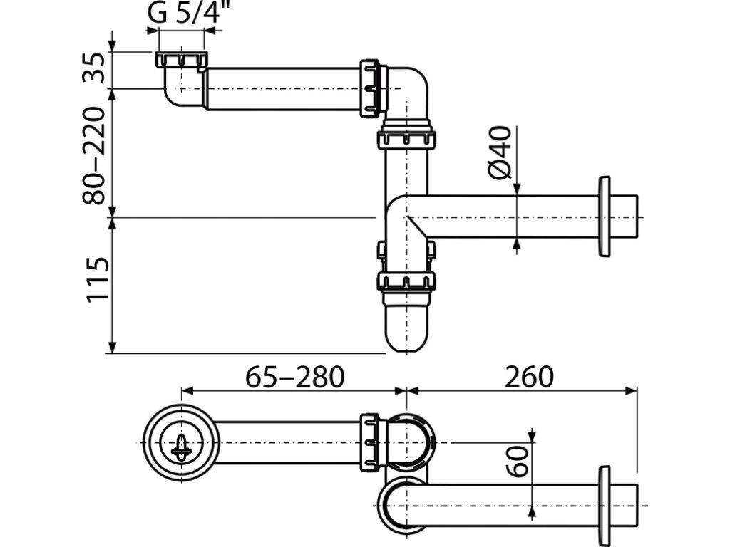Prostorově úsporný umyvadlový sifon DN40 s převlečnou maticí 5/4"