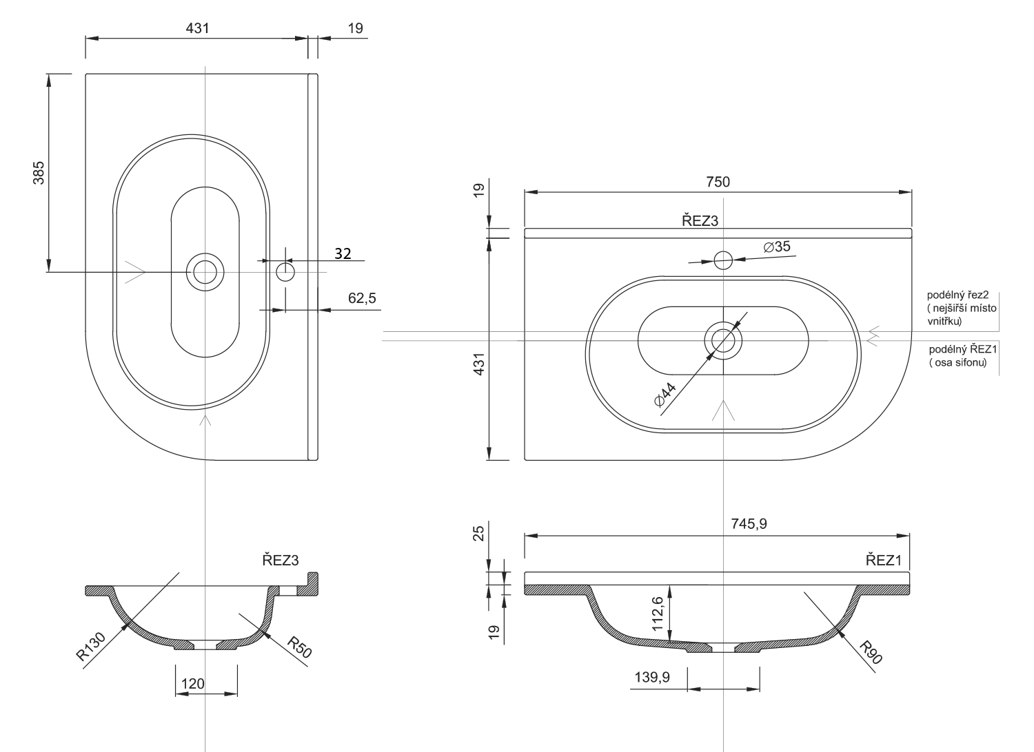 PULSE umyvadlo rohové, litý mramor, 75x45cm, levé, bílá