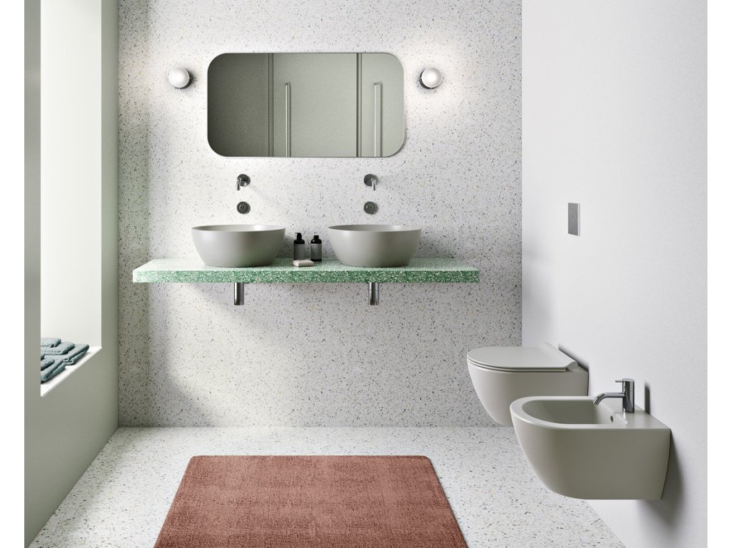 Série PURA COLOR zahrnuje keramická umyvadla na desku, závěsné WC mísy a bidety v 8 barevných variacích.