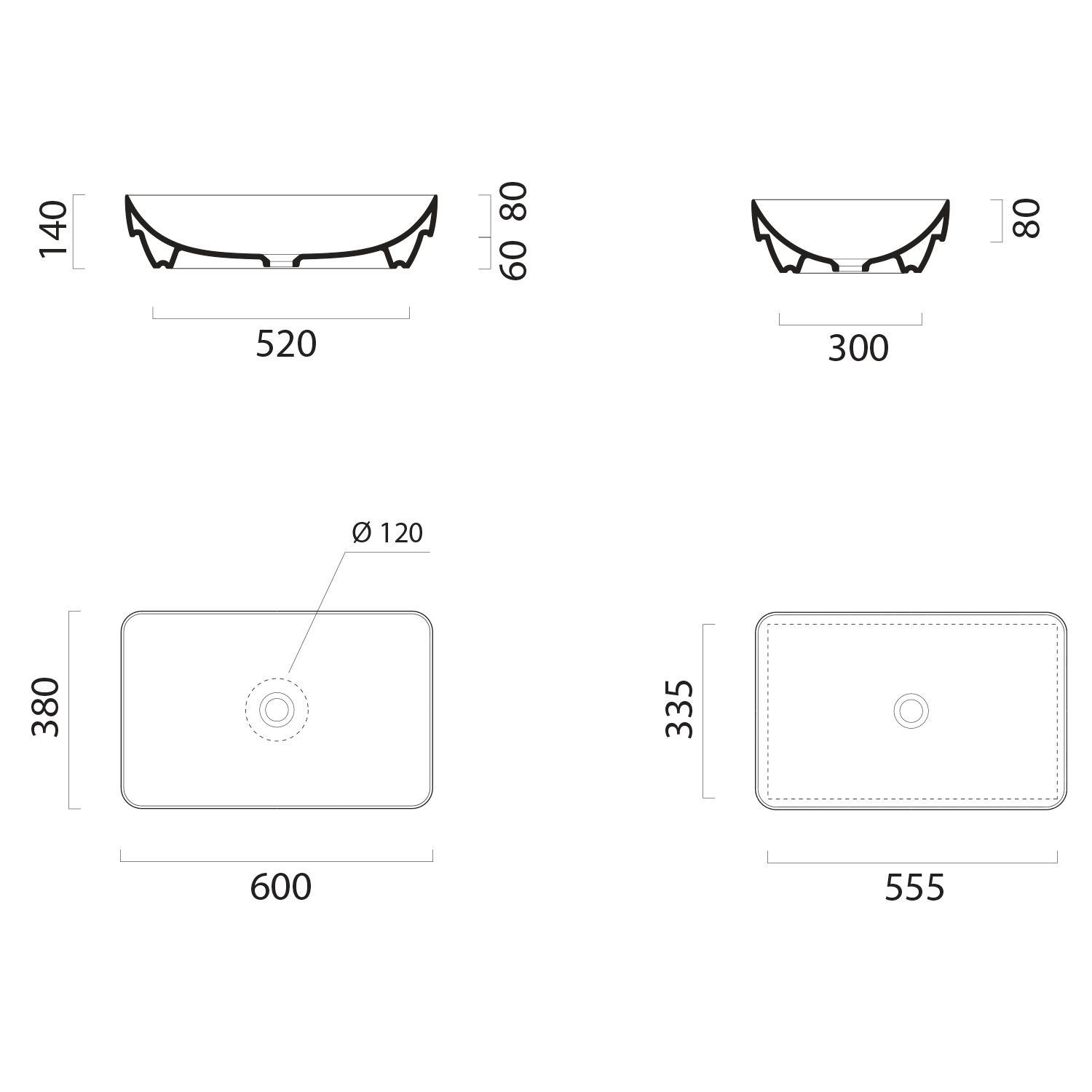 - Hranatá umyvadla s decentně zaoblenými rohy a štíhlou hranou