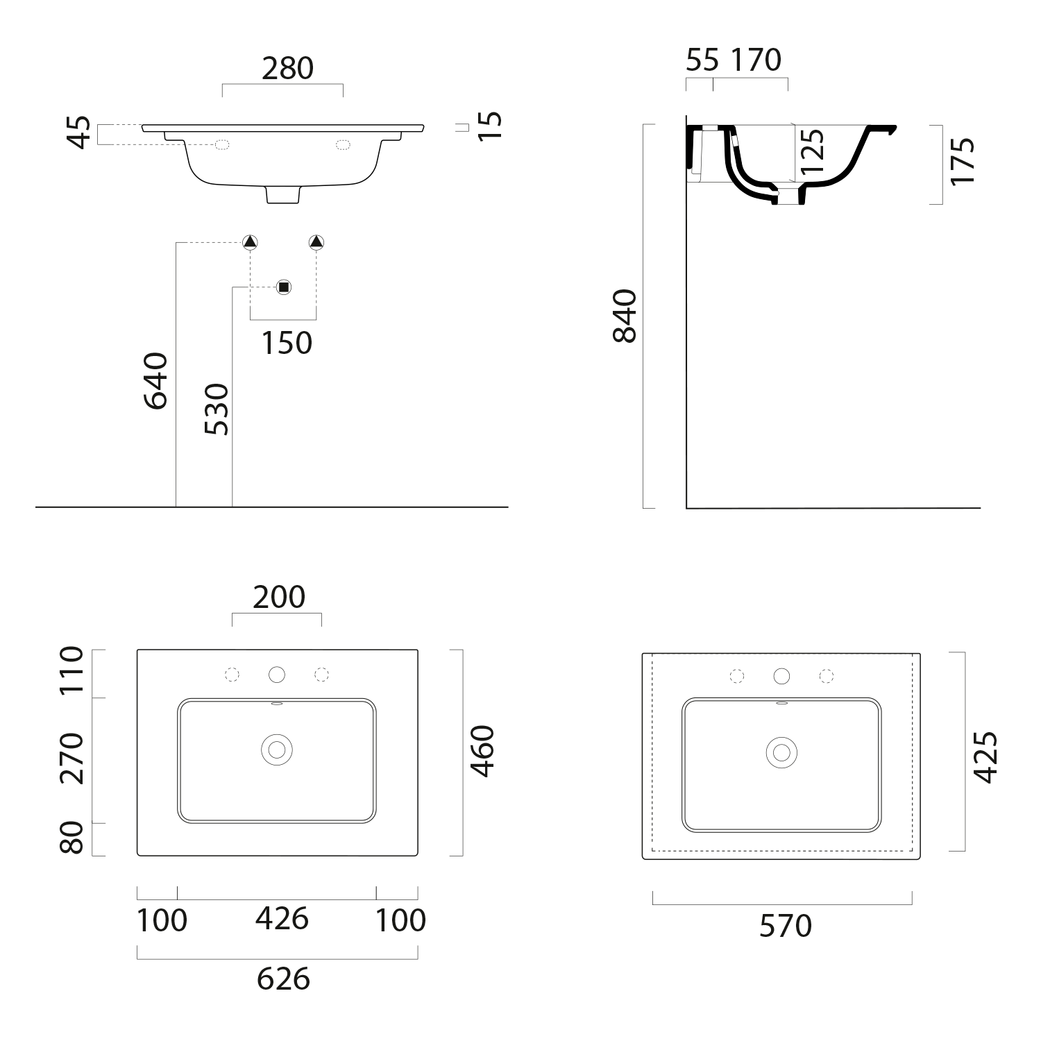 PURA keramické umyvadlo Slim 62x46cm, bez otvoru, bílá mat
