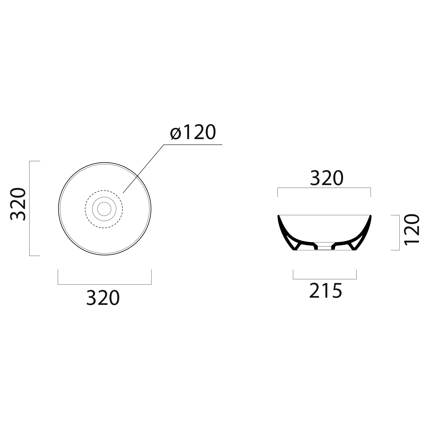 PURA keramické umývátko na desku, průměr 32cm, bílá mat