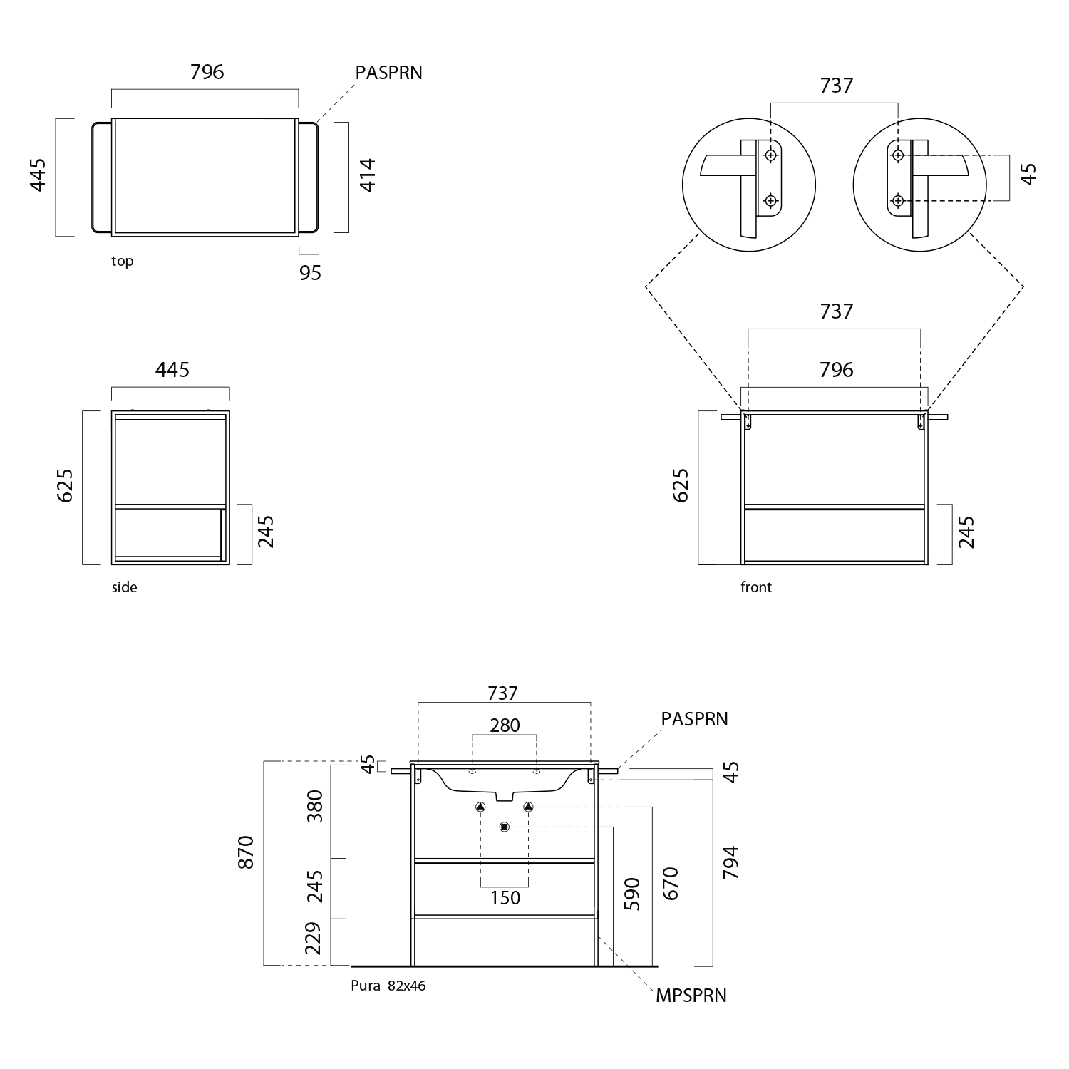 PURA nábytková nožička, výška 229mm, pro konstrukci MSAP82N/MSAP102N, černá
