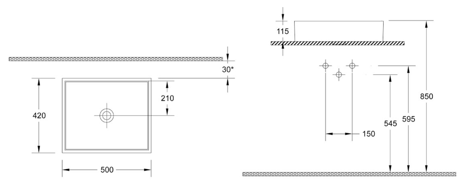 PURITY keramické umyvadlo na desku, 50x42cm, bílá