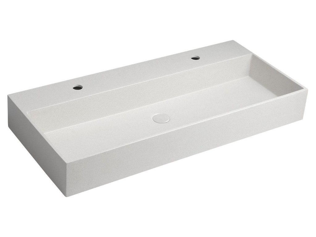 QUADRADO betonové dvojumyvadlo včetně výpusti, 96x44cm, bílý pískovec