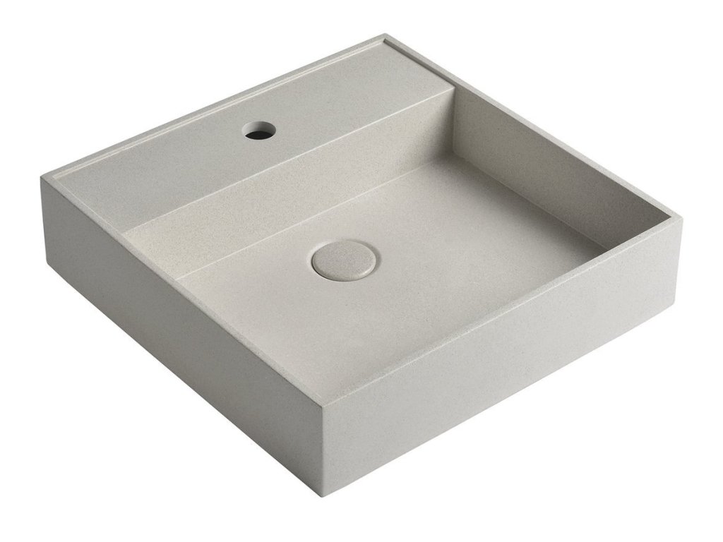 QUADRADO betonové umyvadlo včetně výpusti, 46x46cm, bílý pískovec