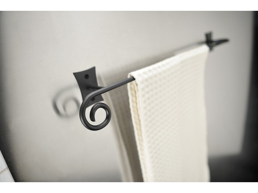 Koupelnové doplňky REBECCA evokují krásu uměleckého kovářství. Kované úchyty vkusně doplňují nádobky z bílé keramiky. Nechte se unést surovou krásou zručně zpracovaného kovu série REBECCA.