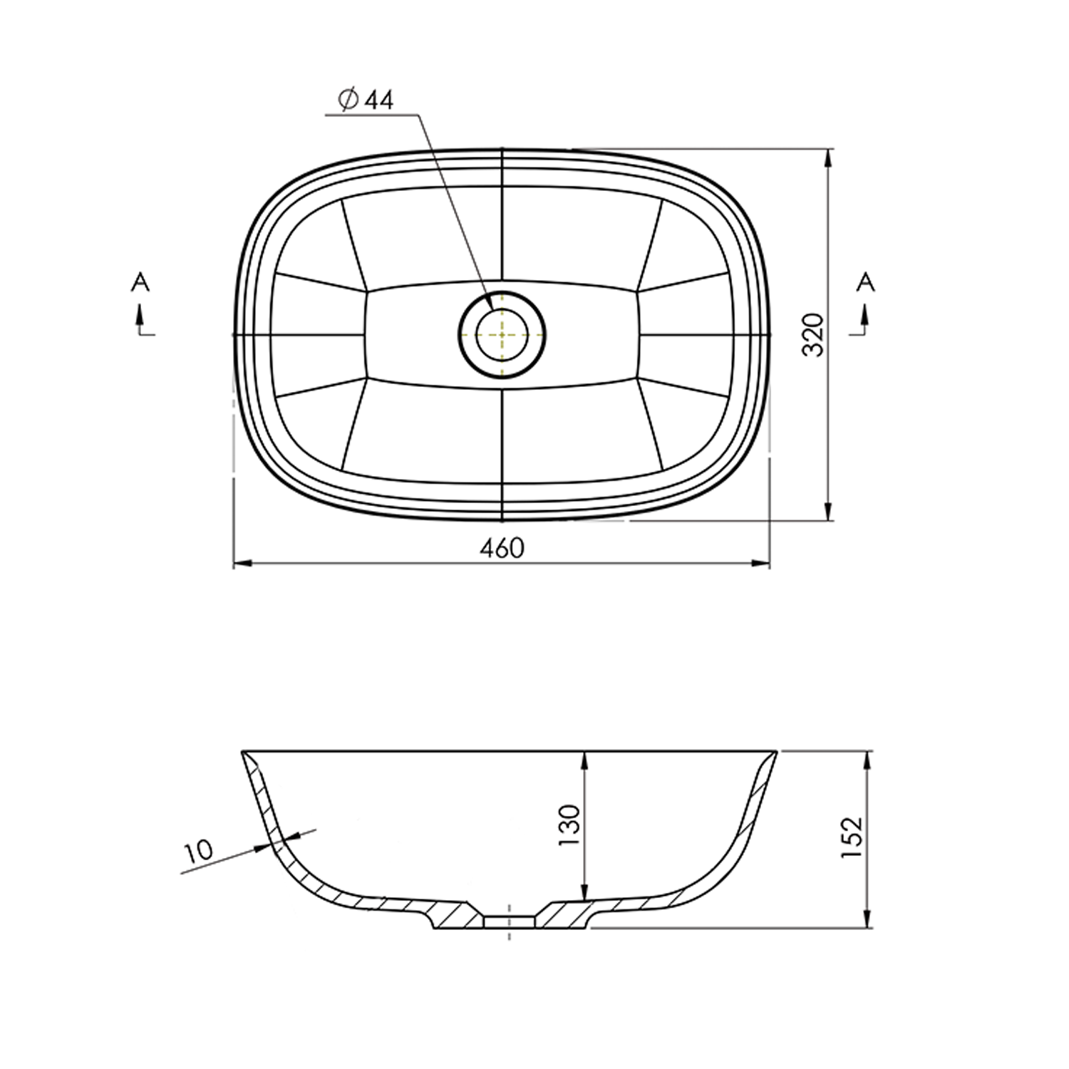 REIKO umyvadlo na desku, litý mramor, 46x32cm, bílá