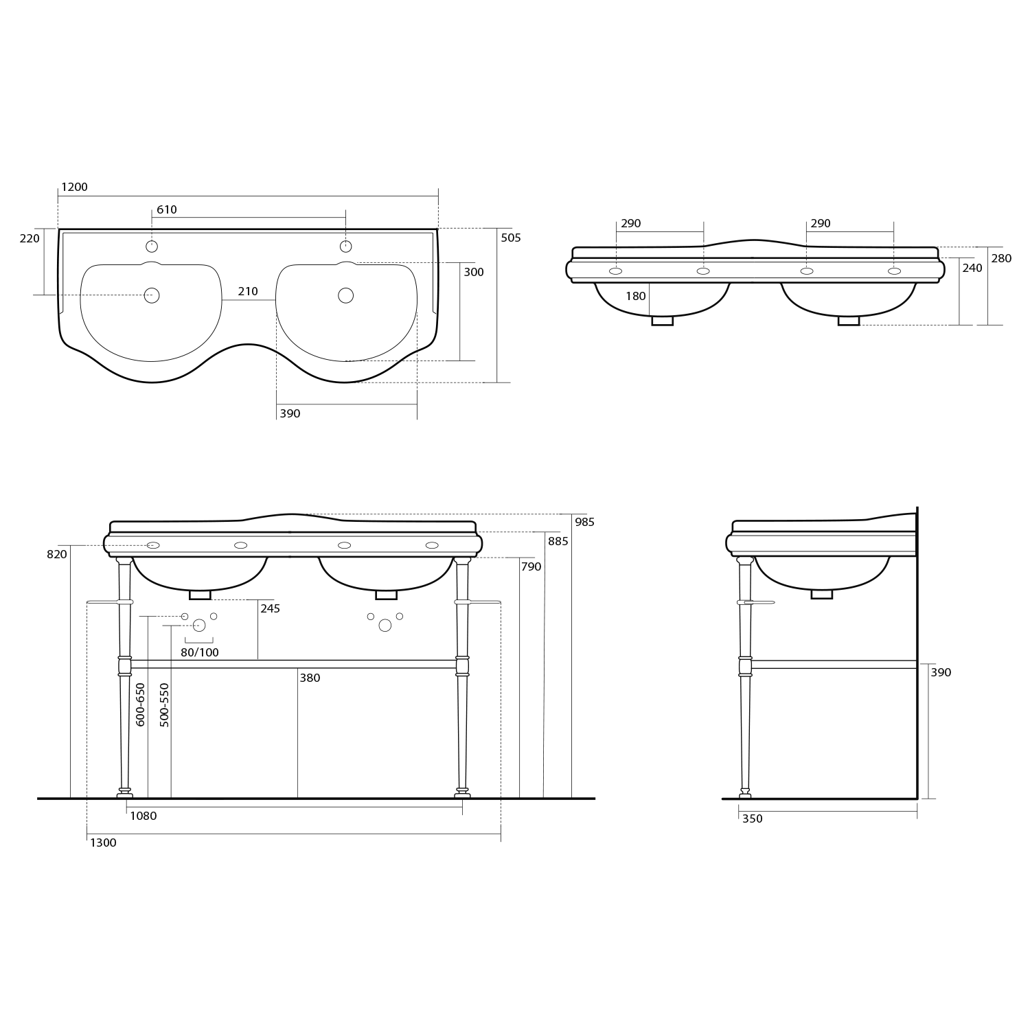 RETRO keramické dvojumyvadlo 120cm, bílá