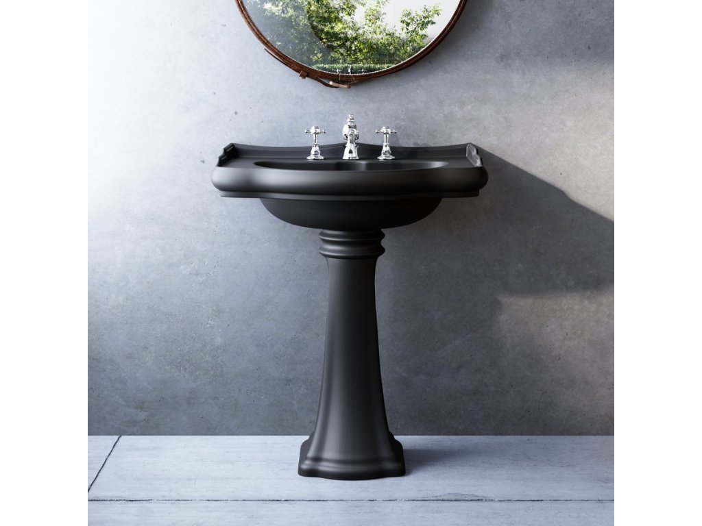 RETRO keramické umyvadlo 69x52cm, 3 otvory, černá mat
