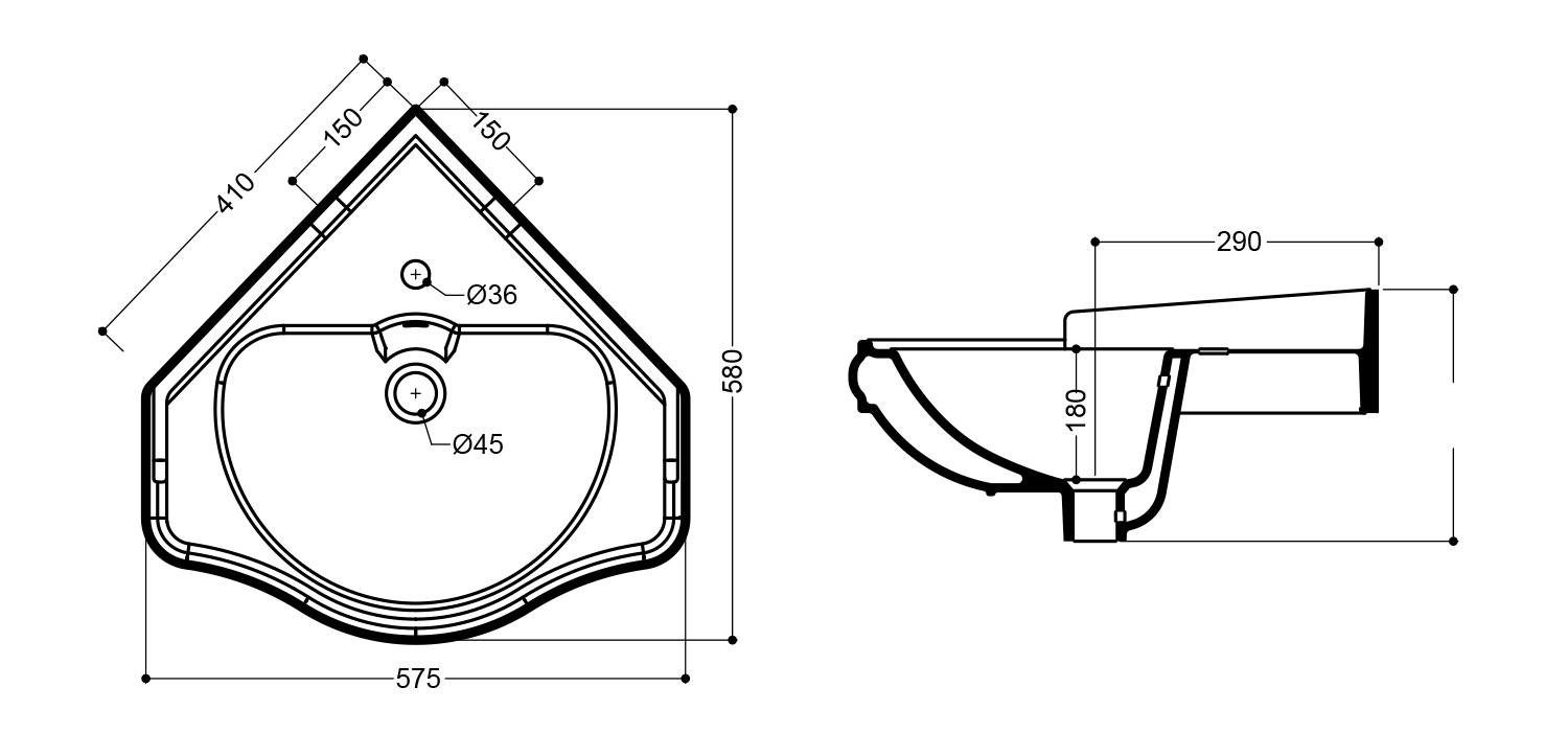 | Typ umyvadla: | Rohové umyvadlo |