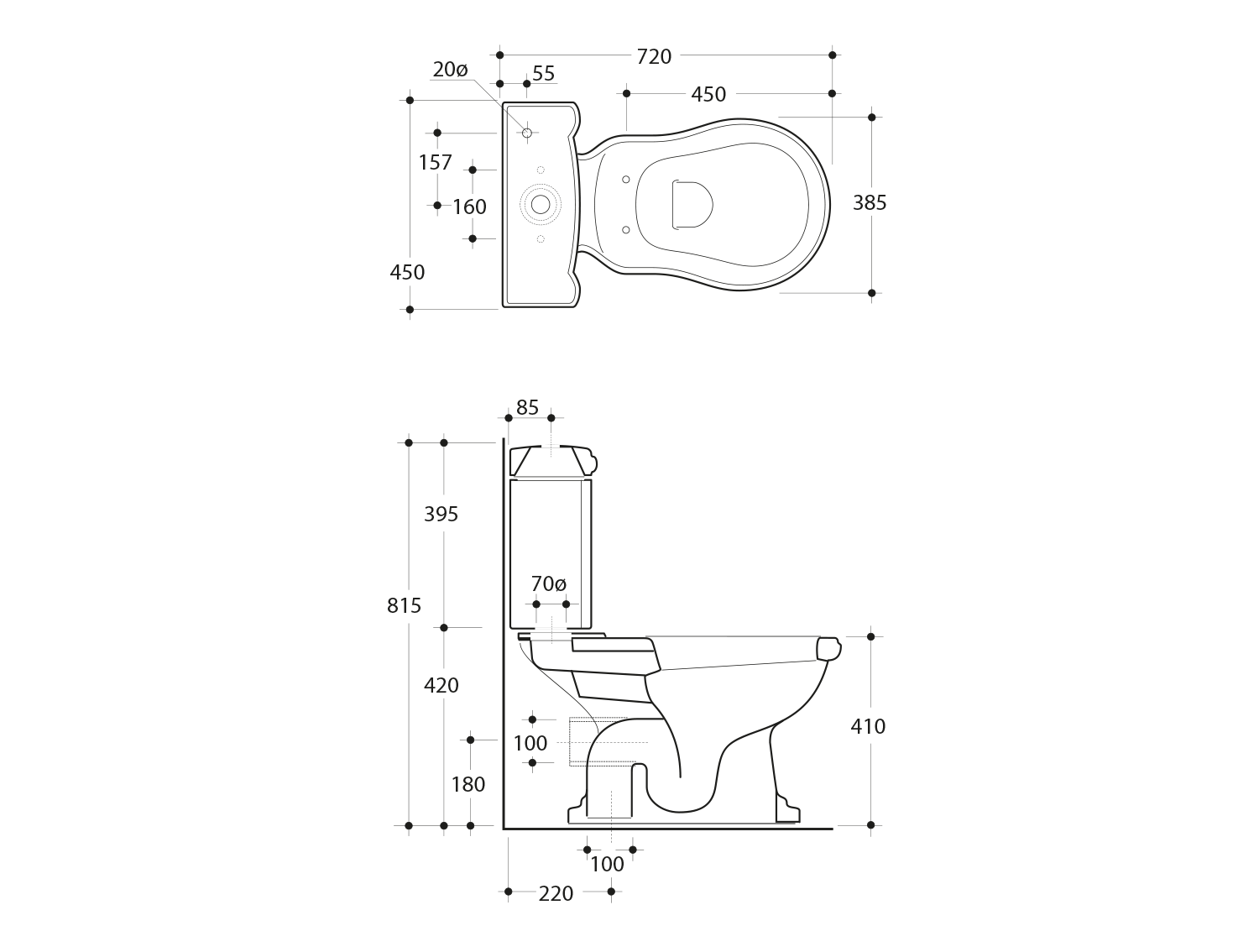 RETRO nádržka k WC kombi, bílá