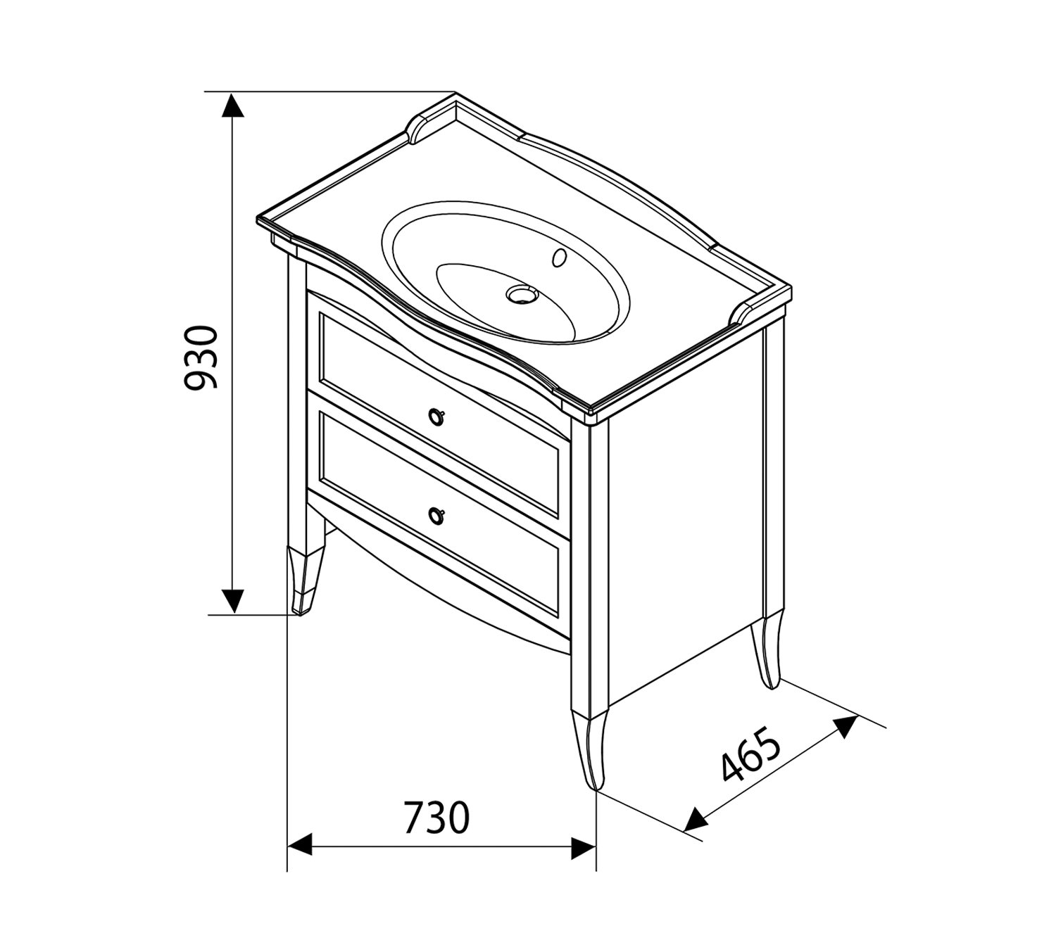RETRO umyvadlová skříňka 73x80x46,5 cm, starobílá