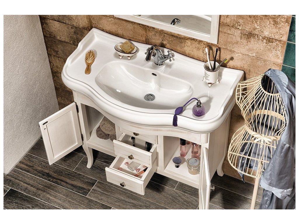 RETRO umyvadlová skříňka 89x80x48cm, starobílá