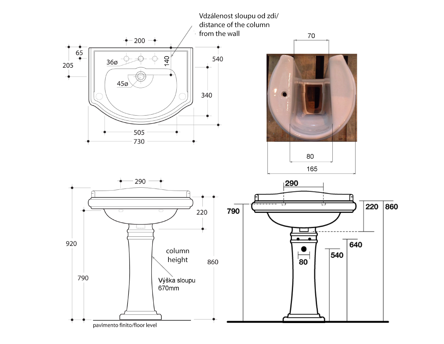 Sloup k umyvadlům 104501, 104601, 104601-3 a 104701.