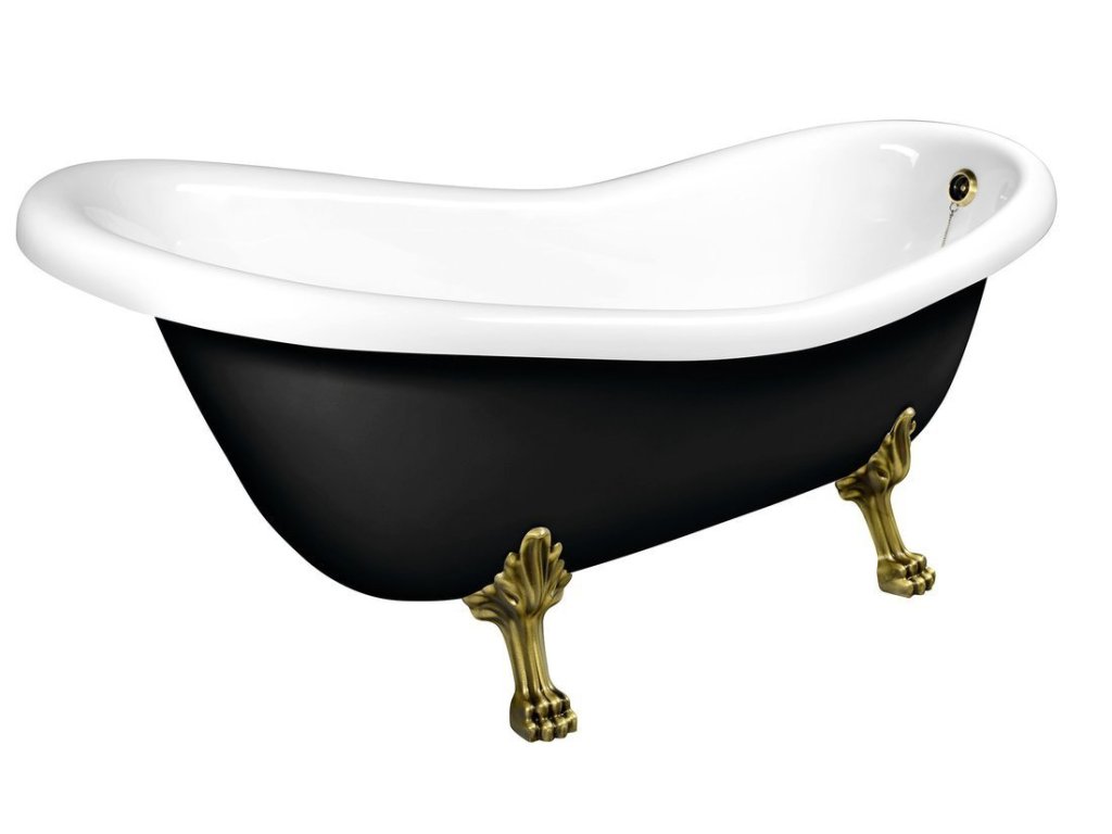RETRO volně stojící vana 147x69,5x67,5cm, nohy bronz, černá/bílá