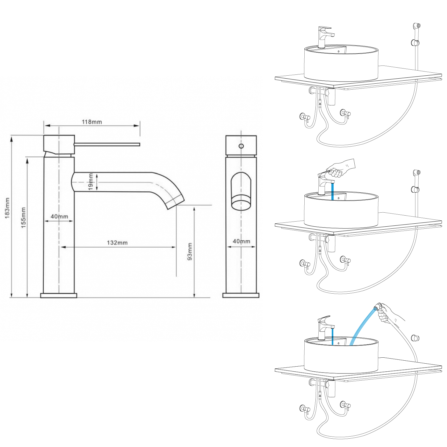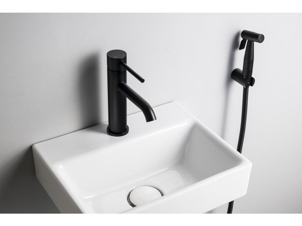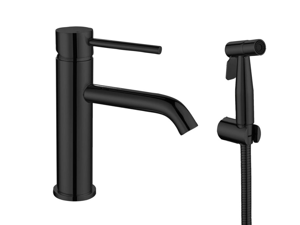 RHAPSODY stojánková umyvadlová baterie s bidetovou sprchou, černá