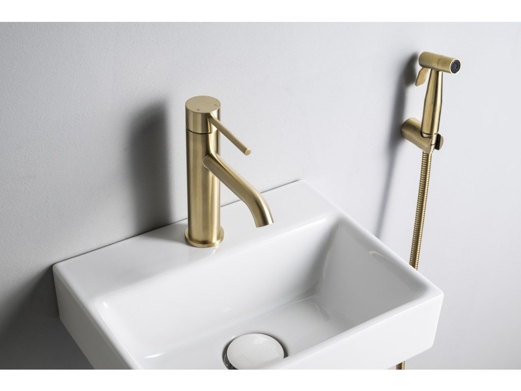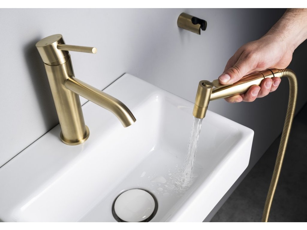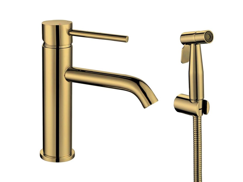 RHAPSODY stojánková umyvadlová baterie s bidetovou sprchou, zlato mat