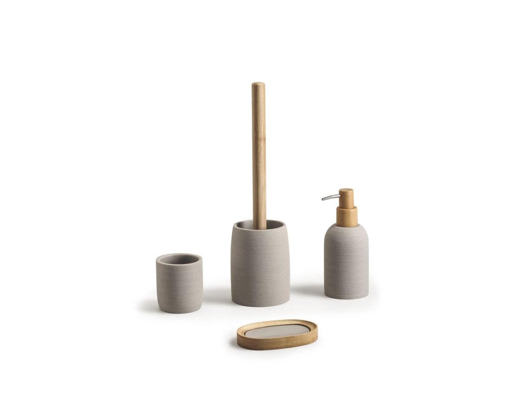 Decentní zdobení jemným proužkem a tlumená béžová barva ve spojení s bambusem činí z doplňků RIKO jedinečnou kolekci vhodnou do koupelen v přírodním nebo minimalistickém stylu.