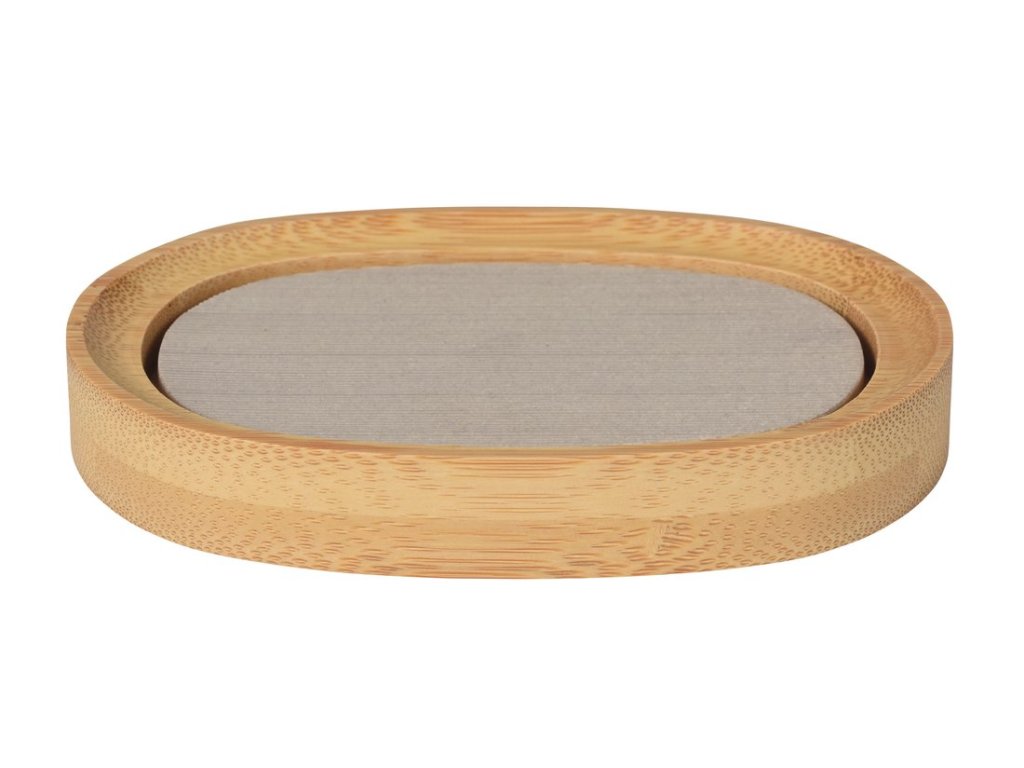 Decentní zdobení jemným proužkem a tlumená béžová barva ve spojení s bambusem činí z doplňků RIKO jedinečnou kolekci vhodnou do koupelen v přírodním nebo minimalistickém stylu.