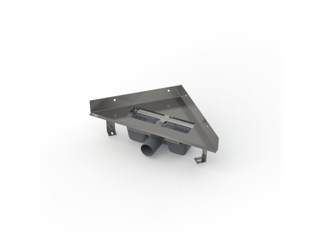 Rohový podlahový žlab bez okraje pro perforovaný rošt