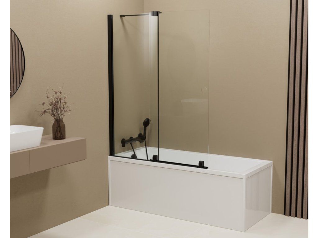 ROLLS BLACK vanová zástěna 1200x1500mm, čiré sklo