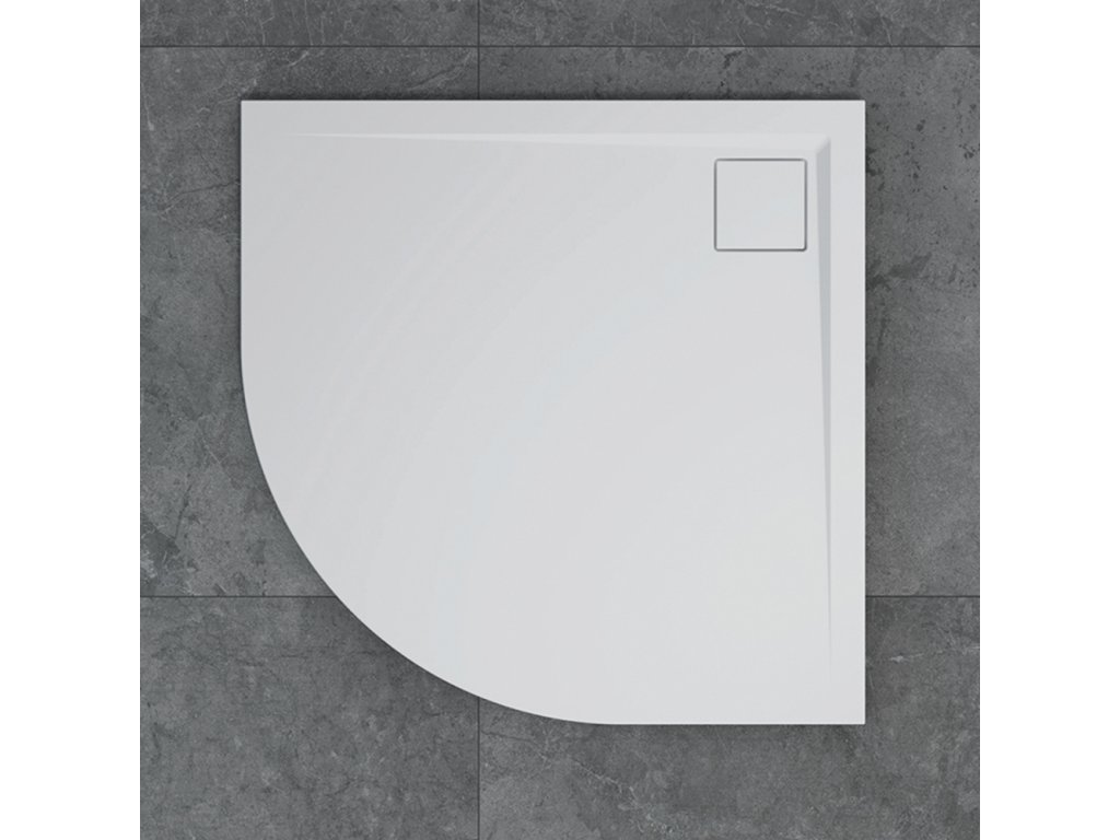 RONAL sprchová vanička LIVADA z litého mramoru, čtvrtkruh 80x80x3,5 cm, bílá, sifon na kratší straně vaničky W20R5508004