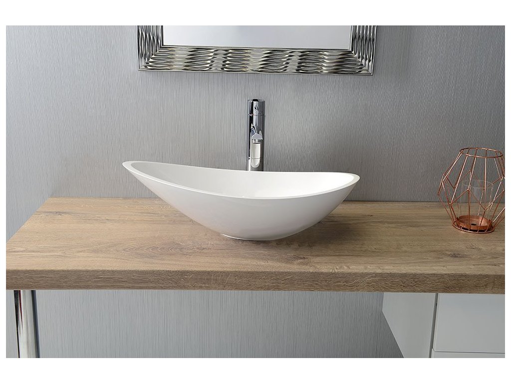 ROSSETA umyvadlo na desku, litý mramor, 56,4x32,3cm, bílá