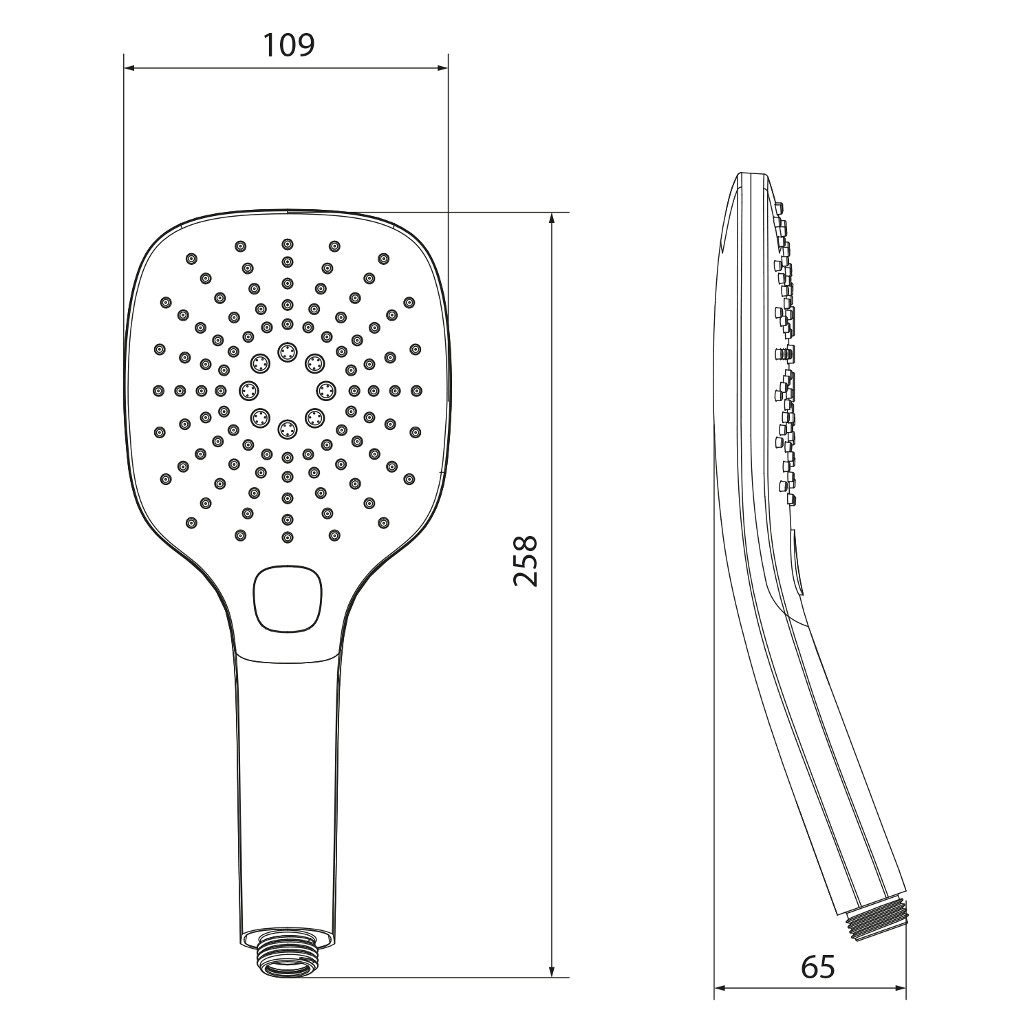 Ruční masážní sprcha s tlačítkem, 3 režimy sprchování, silikon trysky, 109x109mm, ABS/chrom