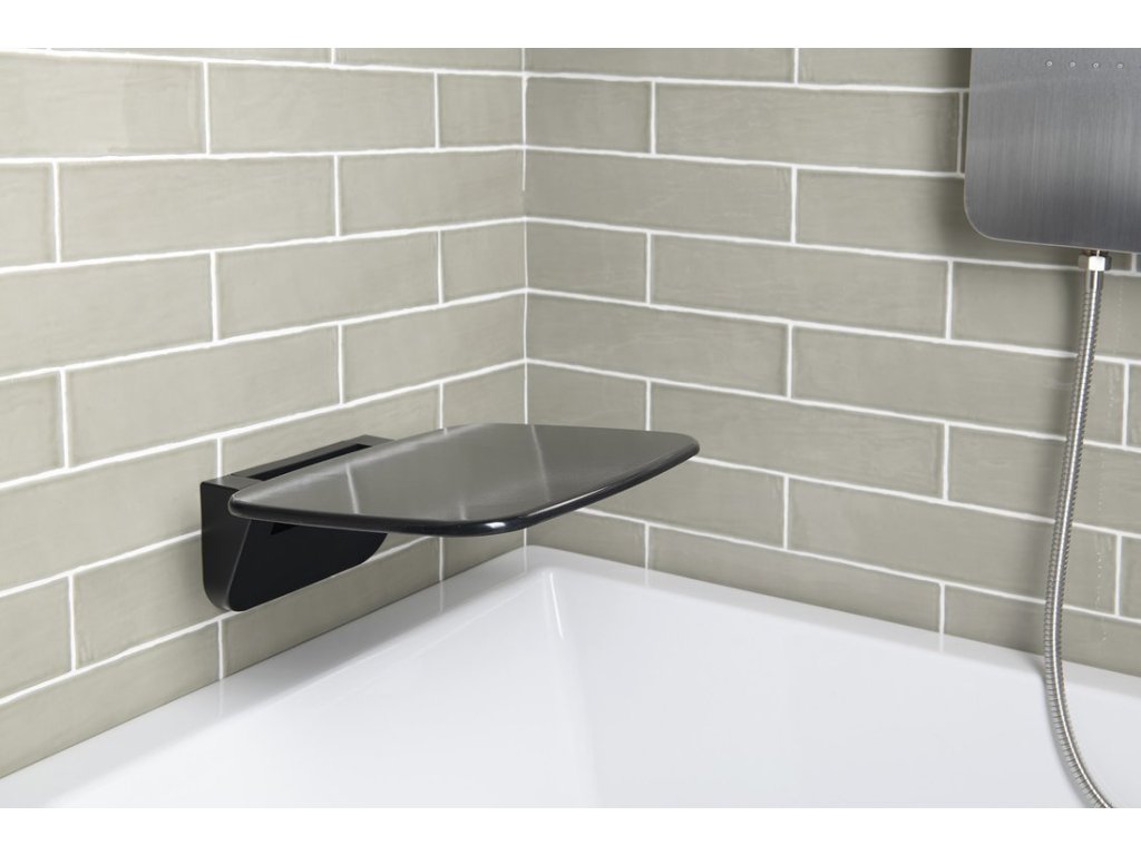SAAP BLACK sklopné sedátko do sprchového koutu, 35x32,8cm, černá