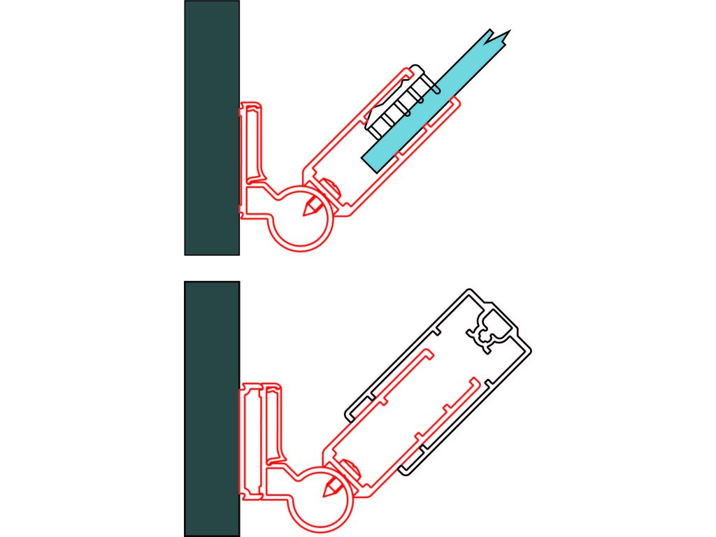 Sada 2 profilů k upevnění jedné strany dveří nebo boční stěny do zdi pod úhlem 0 až 180°Doplňkové parametry