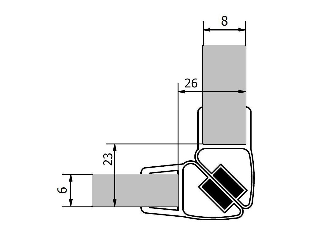Sada dvou těsnění (magnet) na 6 a 8mm sklo, 2000mm, varianta roh