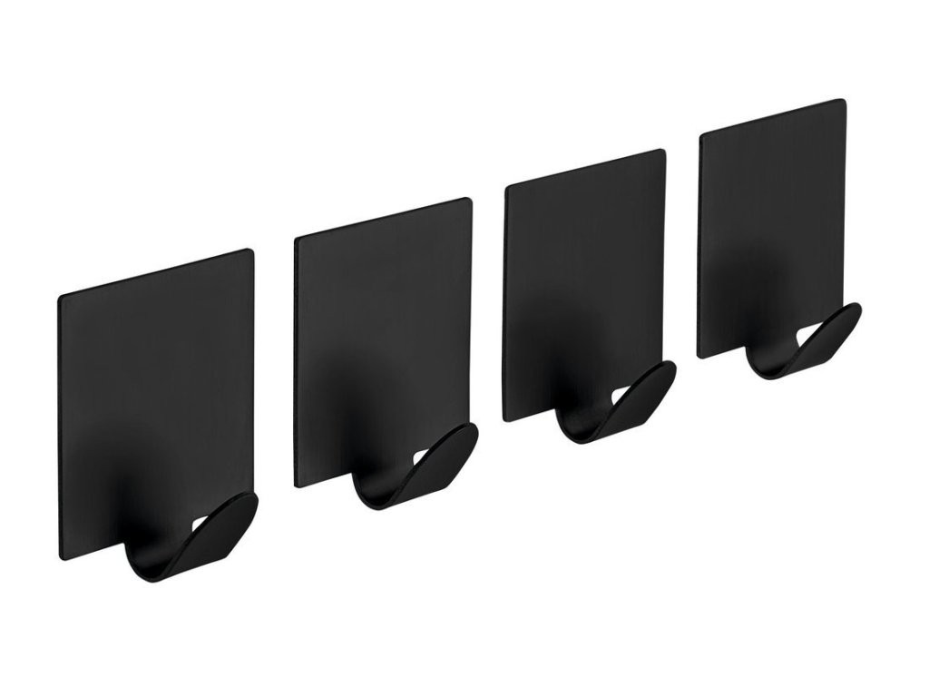 Samolepící háček, sada 4 ks, černá mat