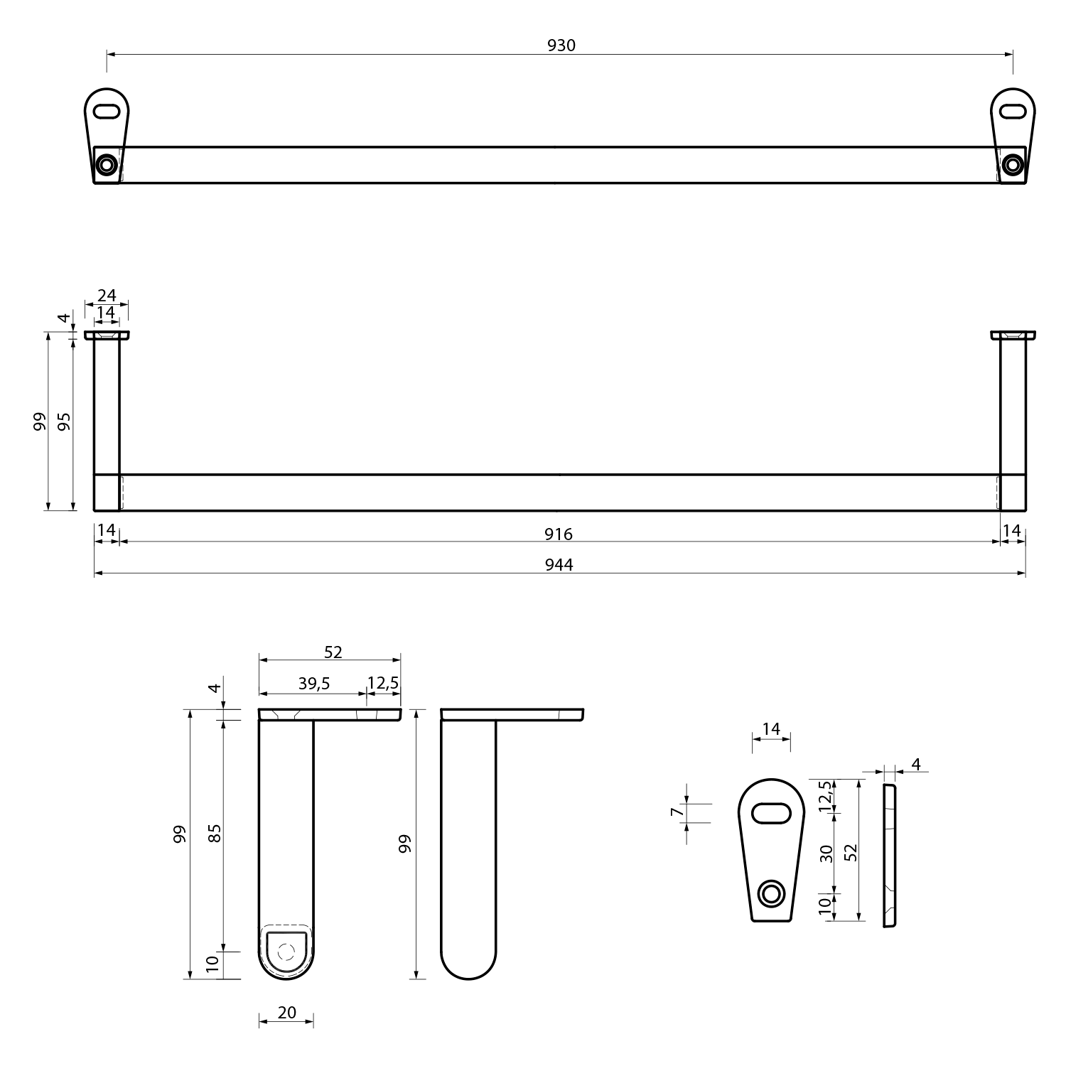 SAND/KUBE X/NORM čelní držák ručníků 100cm, chrom