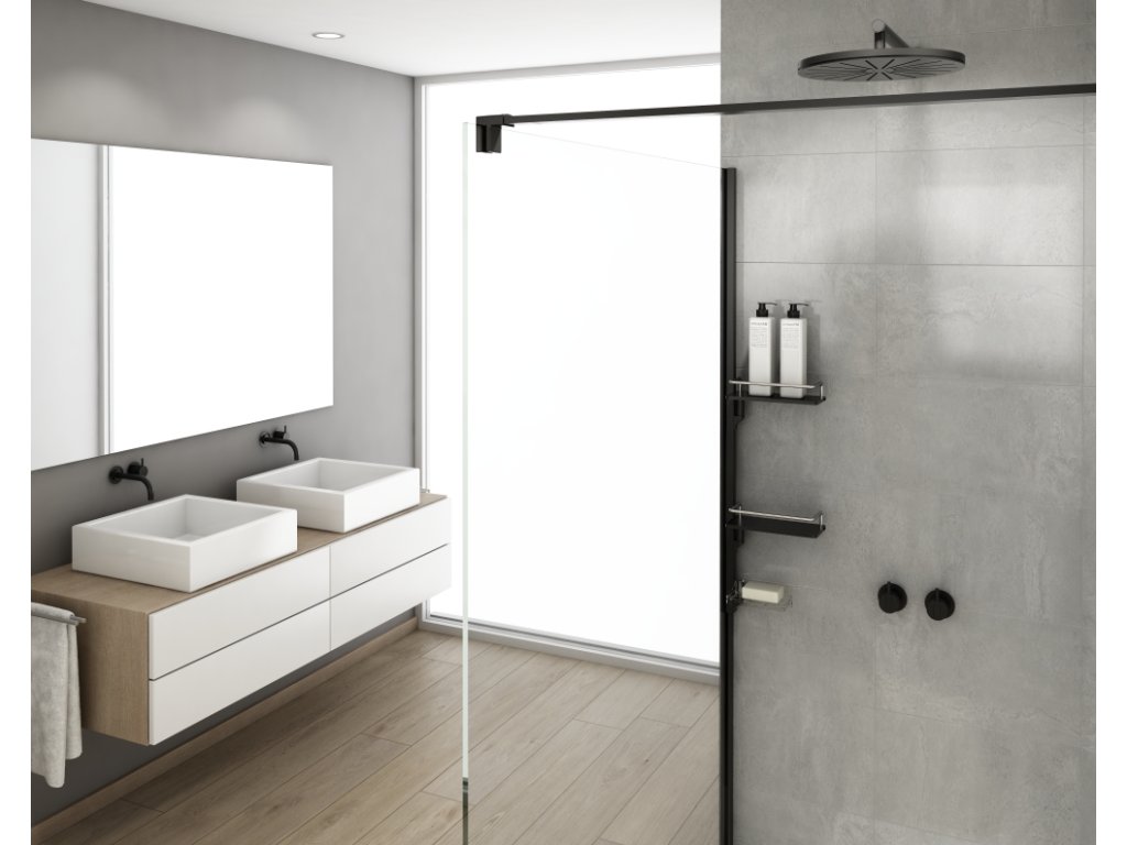 Nosný (hliníkový) profil, 2 poličky, 1 mýdlenka - pro zástěny EASY, v černé matné barvěDoplňkové parametry