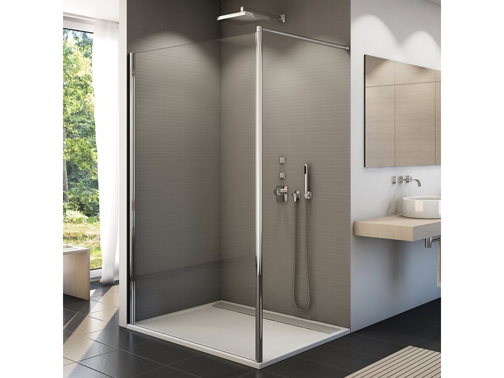 Walk-in zástěna FUN od RONAL pro nekonvenční řešení koupelny a pohodlný široký vstup. Transparentní plocha pevné sprchové zástěny je dominantním prvkem koupelny. 6mm bezpečnostní sklo s antiplakovou úpravou Aquaperle. Tuto samostatnou pevnou stěnu lze zkombinovat s doplňkovou boční stěnou FUDT. Instalace je možná na vaničku i přímo na dlažbu. Univerzální stropní nebo stabilizační vzpěru o standardní délce 1300 mm lze zkrátit na míru. Walk-in zástěnu lze namontovat vlevo i vpravo. K této sprchové zástěně lze objednat praktický držák ručníku nebo skleněnou poličku - nutno specifikovat při objednání.Doplňkové parametry