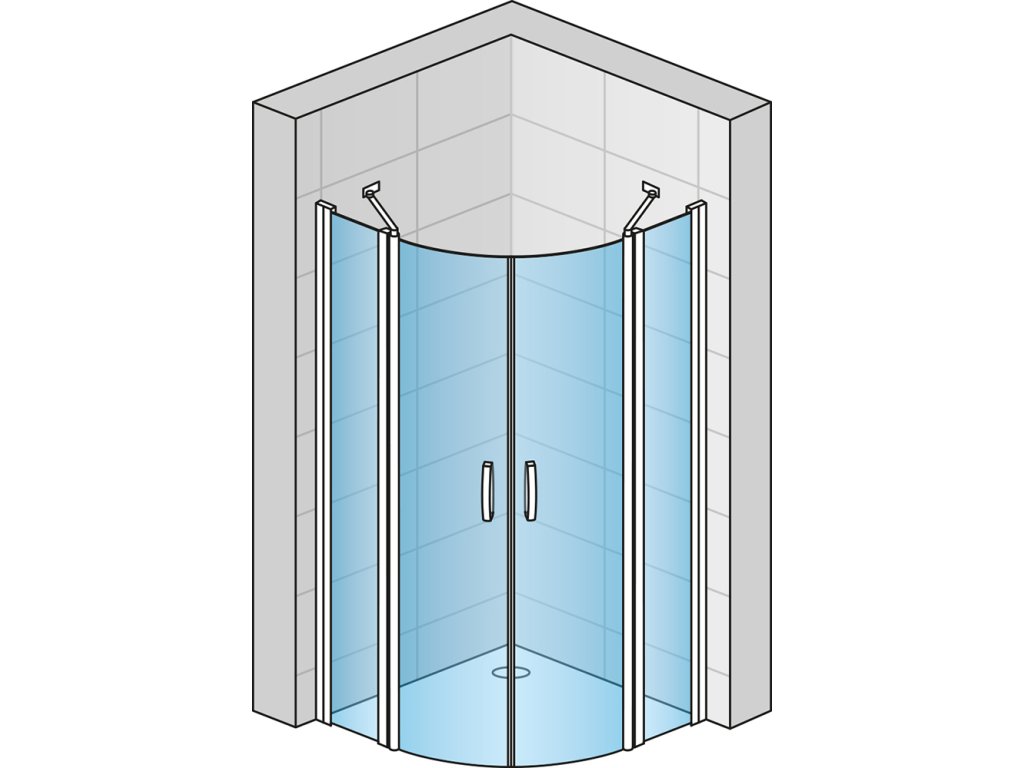RONAL SWING-LINE Čtvrtkruh s dvoukřídlými dveřmi, rádius 500 mm SLR5008005007