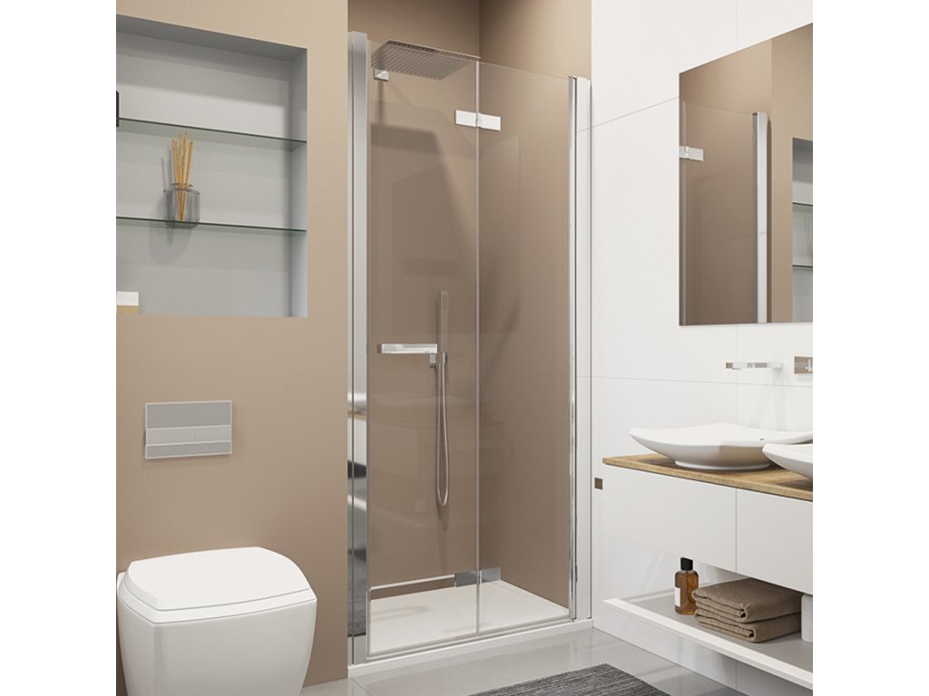 Bezbariérová sprchová zástěna od společnosti RONAL umožňuje velkou šířku vstupu i na malém prostoru a zajišťuje opravdový komfort při sprchování. Dveře s magnetickým těsněním lze otvírat ven i dovnitř a také v polovině skládat. Když se zástěna nepoužívá, je možné sklopit dveře na zeď. Chromované panty jsou na vnitřní straně zapuštěné do skla. Praktický zdvihový mechanismus usnadňuje otvírání a zavírání dveří a zabraňuje předčasnému opotřebení těsnění na dveřích. 6mm bezpečnostní sklo s antiplakovou úpravou Aquaperle. 10mm prahová lišta. Decentní úzké madlo. Dílky z kvalitního chromovaného plastu. Sprchové dveře lze kombinovat s boční stěnou SLT1 pro rohový vstup. Možné je i umístění v nice.Doplňkové parametry