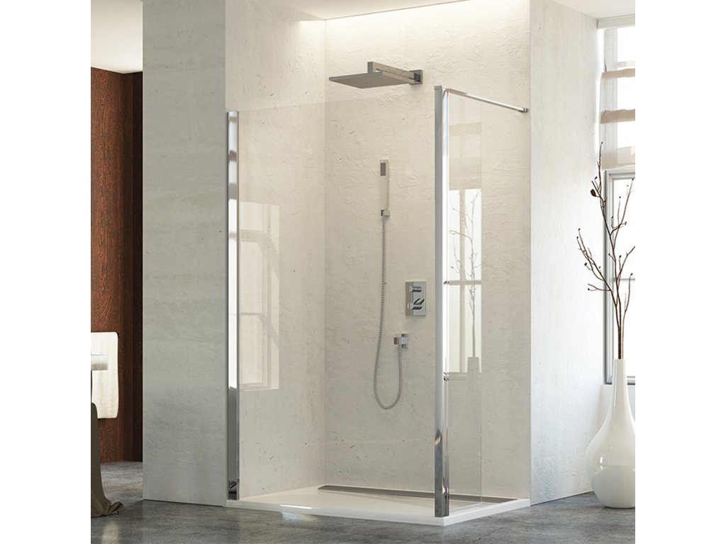 Stropní nebo stabilizační vzpěra, kotvicí a spojovací profil + krátká otočná stěna. 6mm bezpečnostní sklo s antiplakovou úpravou Aquaperle. Délka vzpěry 1500 mm. Maximální výška stropu pro kotvení je 2500 mm. Určeno pro samostatnou pevnou stěnu TOPF2.Doplňkové parametry