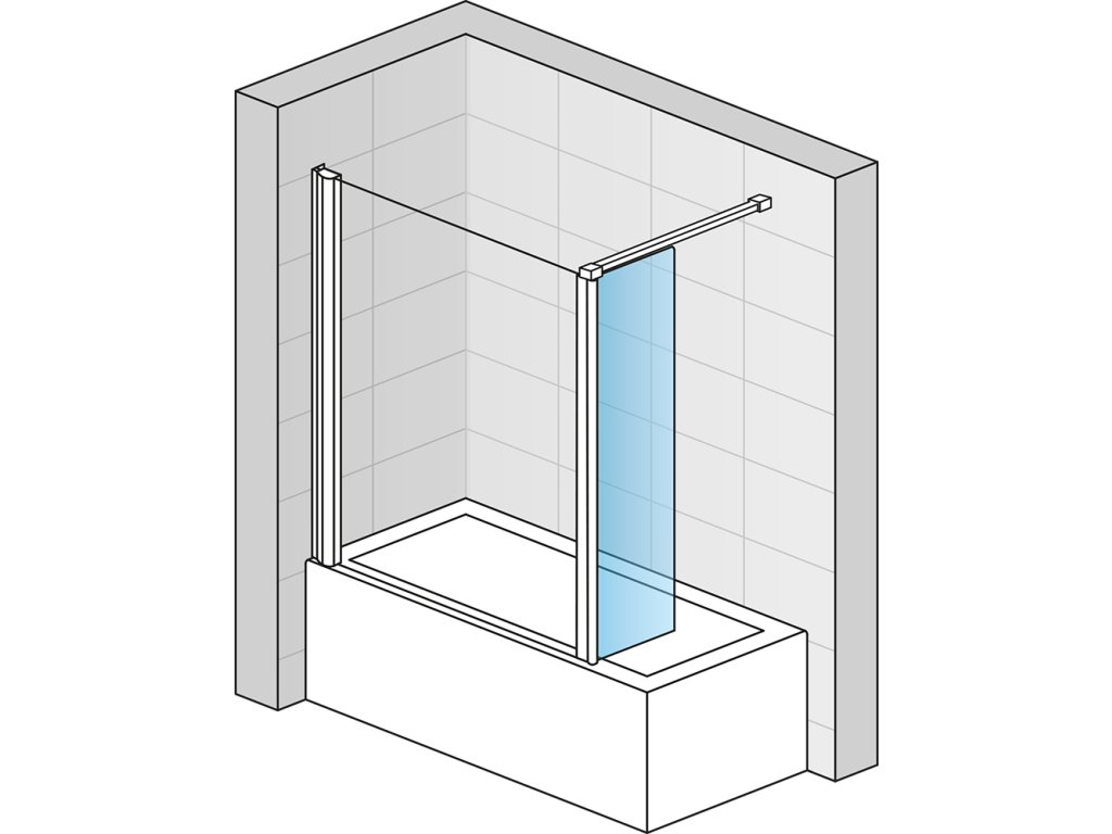 Montážní set s krátkou otočnou stěnou v 90°, standardní profil + krátká otočná stěna šířky 437 mm. Délka stabilizační / stropní vzpěry je 1500 mm. Maximální výška stropu pro kotvení je 2900 mm. 6mm bezpečnostní sklo s antiplakovou úpravou Aquaperle. Tento montážní set je určen pro kombinaci s pevnou vanovou zástěnou TOPV.Doplňkové parametry