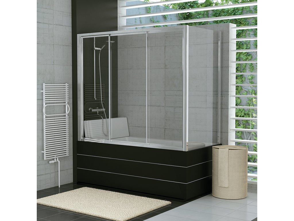 Třídílné vanové dveře od společnosti RONAL pro pohodlné sprchování. Vhodné i pro malé koupelny, kde není místo pro samostatný sprchový kout. 3mm bezpečnostní sklo s antiplakovou úpravou Aquaperle. Magnetické těsnění. Chromované madlo. Chromované plastové dílky. Blokovaná strana vlevo.Doplňkové parametry