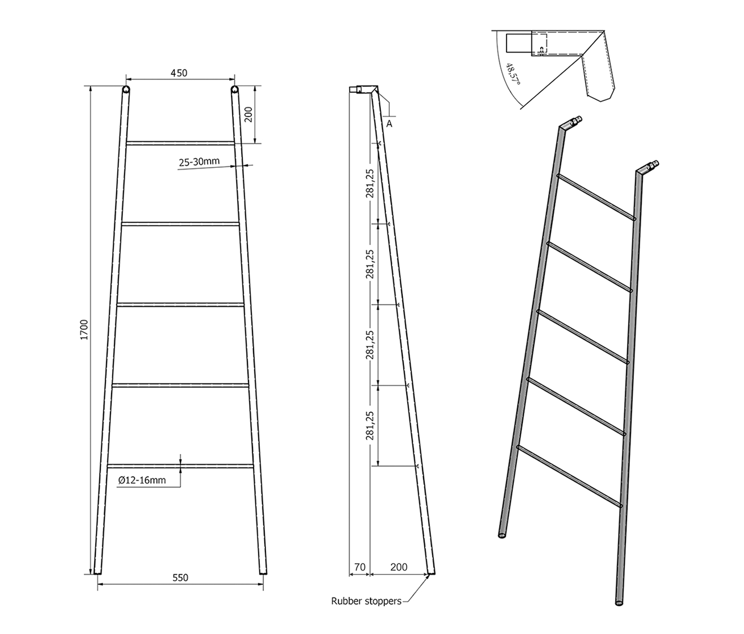 SEGA sušák ručníků na opření 550x1700x70mm, bílá mat