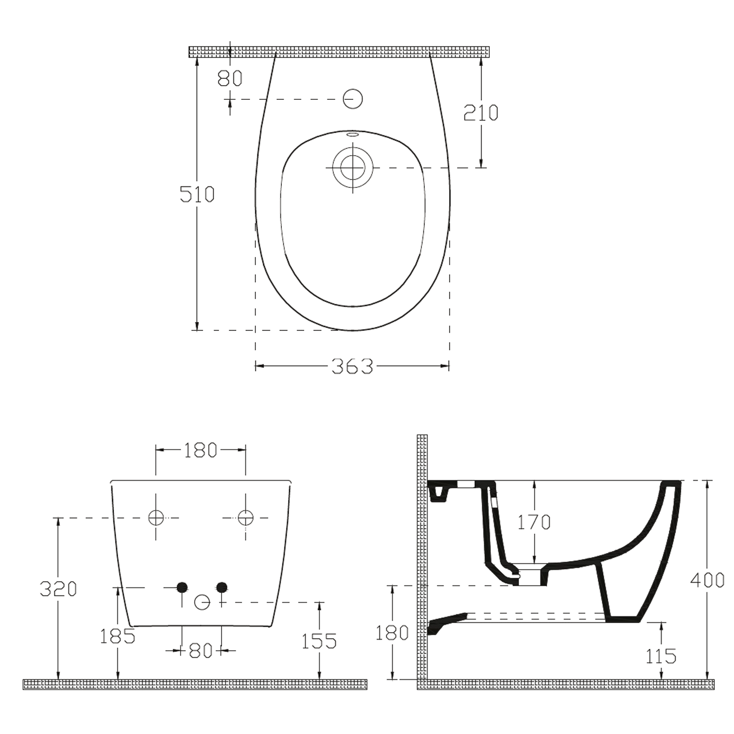 SENTIMENTI bidet závěsný, 36x51cm, bílá