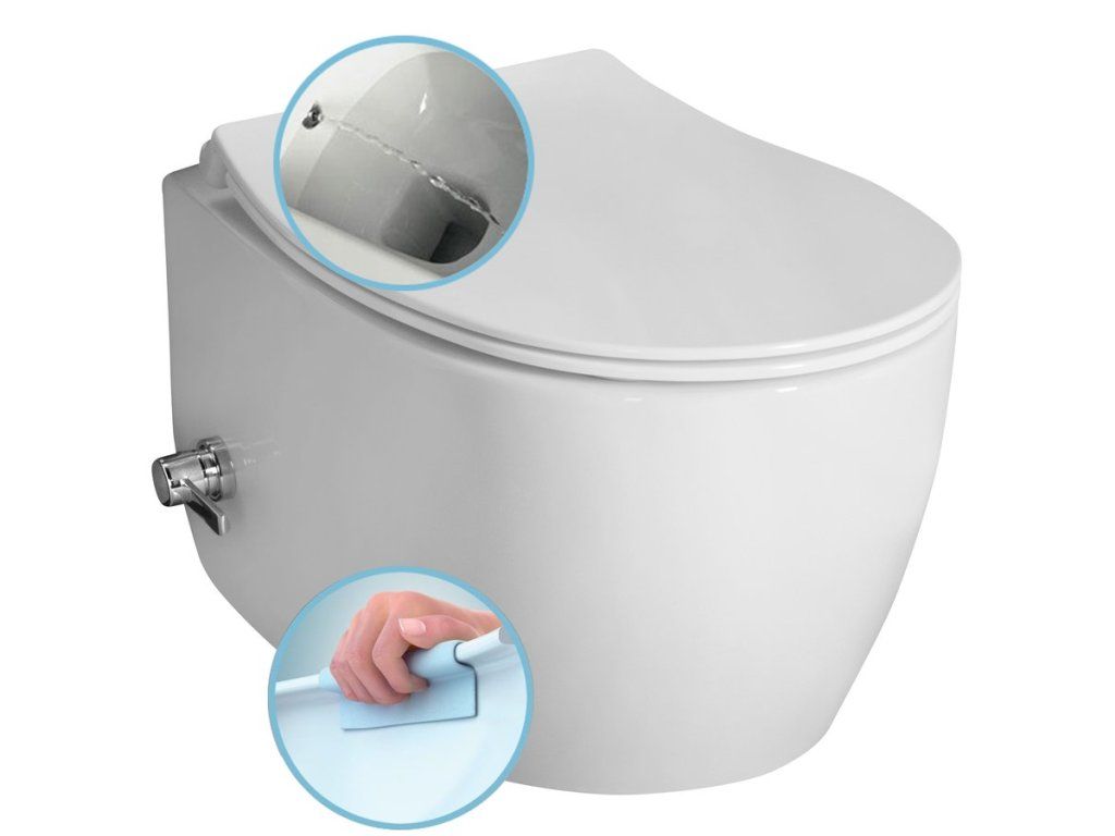SENTIMENTI CLEANWASH závěsná WC mísa, integrovaný ventil a bidet. sprška, Rimless, 36x51cm, bílá