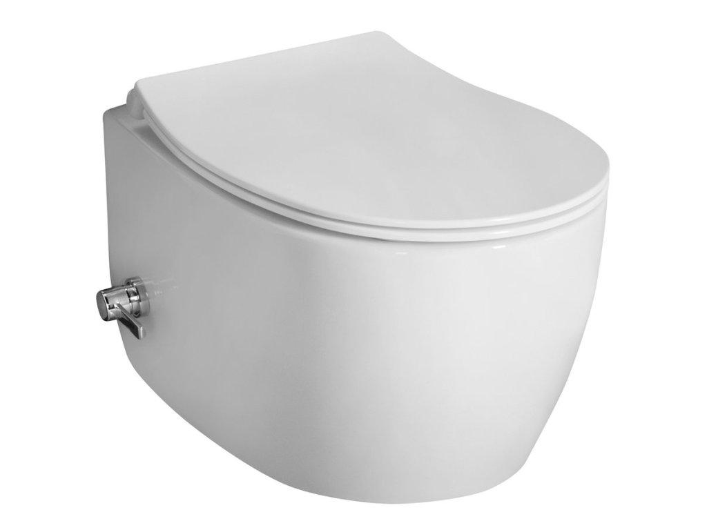 SENTIMENTI CLEANWASH závěsná WC mísa, integrovaný ventil a bidet. sprška, Rimless, 36x51cm, bílá
